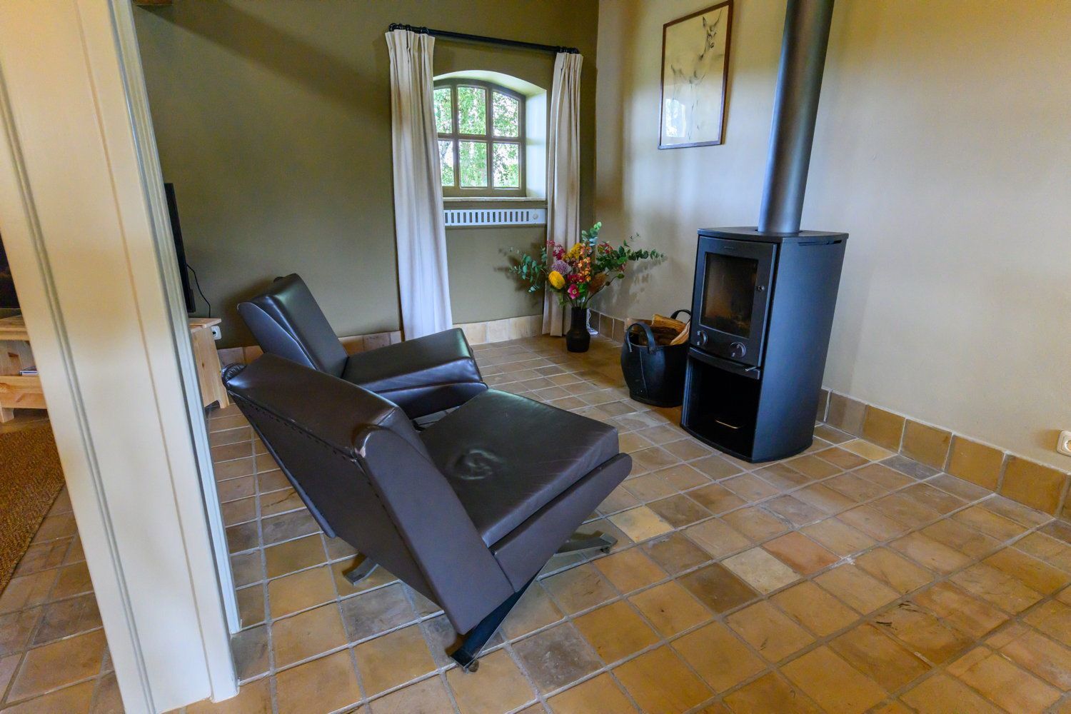 Das Cottage verfügt über ein großes Wohnzimmer mit herrlichem Blick auf die hölzernen Dachstühle. Es gibt einen Holzofen und Fußbodenheizung im gesamten Haus.